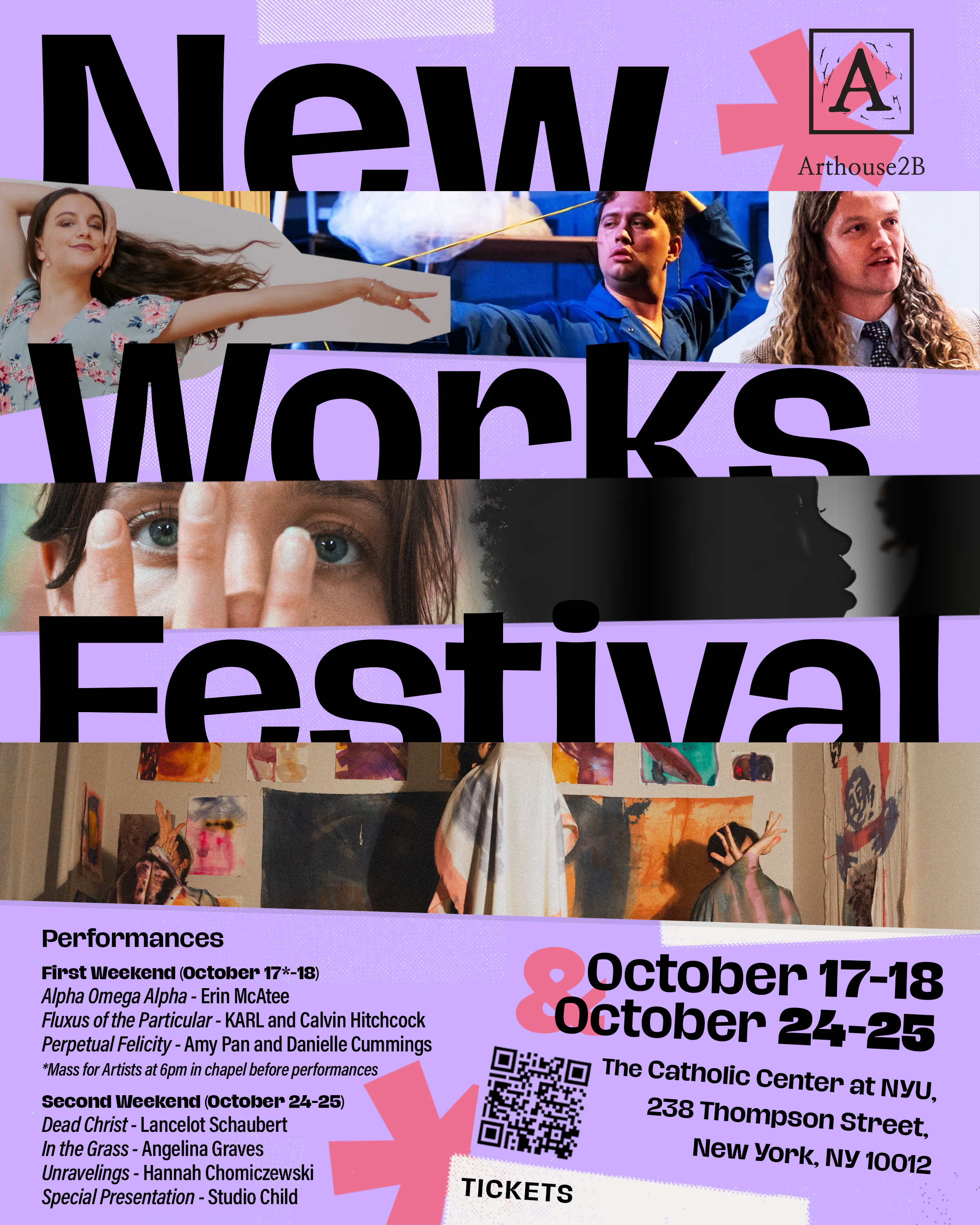 The New Works Festival featured a diverse lineup of theatre, dance, performance art, and more. The festival showcased works created by: Erin McAtee, KARL & Calvin Hitchcock, Amy Pan & Danielle Cummings, Lancelot Schaubert, Angelina Graves, Hanna Chomiczewski, and Studio Child.